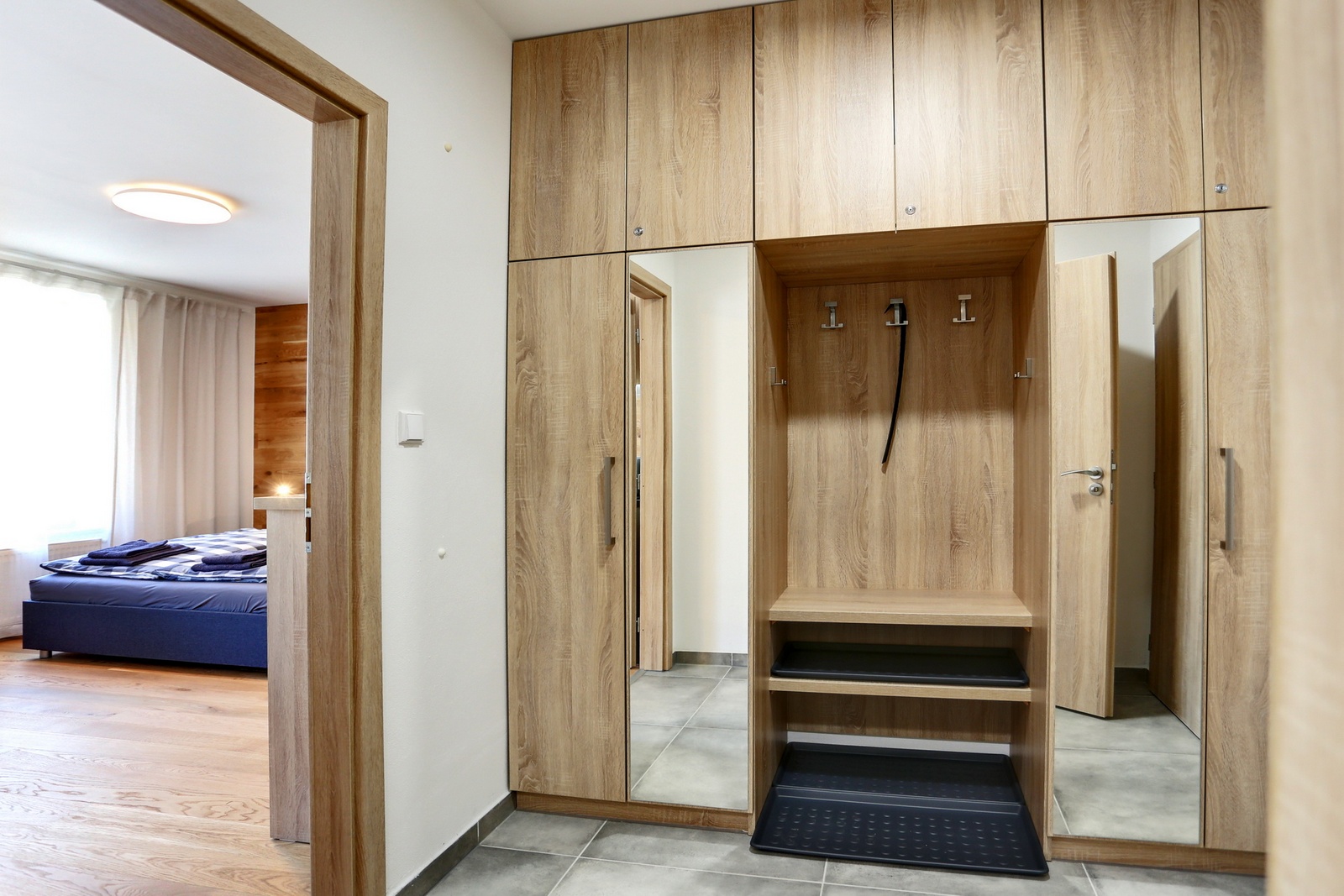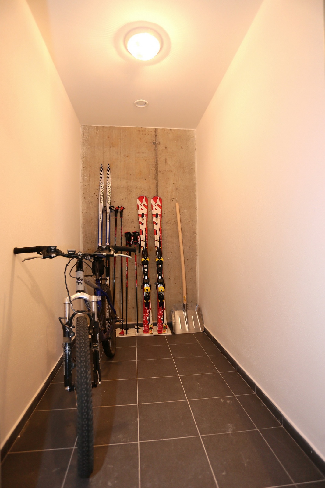 K apartmentu náleží i uzamykatelná suchá a čistá, vyzděná sklepní kóje, kde si můžete bezpečně uschovat jízdní kola nebo lyže. Je zde i zásuvka 220V pro nabíjení elektrokol.